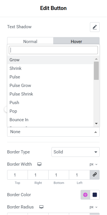 - Hover Animation 옵션을 클릭합니다.